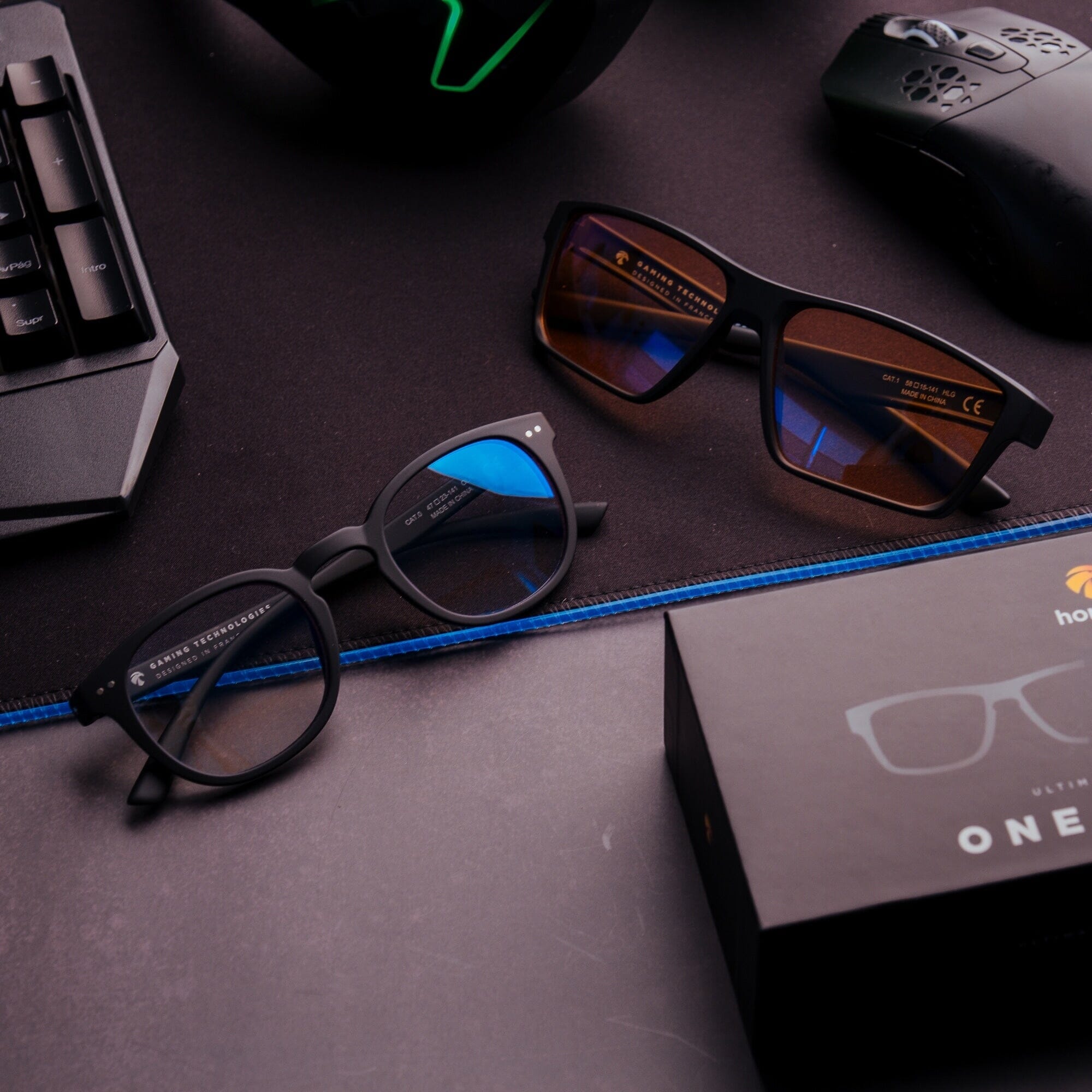 • 1 pair of GAMING ONE Amber glasses (For Men and Women) anti blue light in polycarbonate with anti UV400 treatment, anti reflection, anti scratch