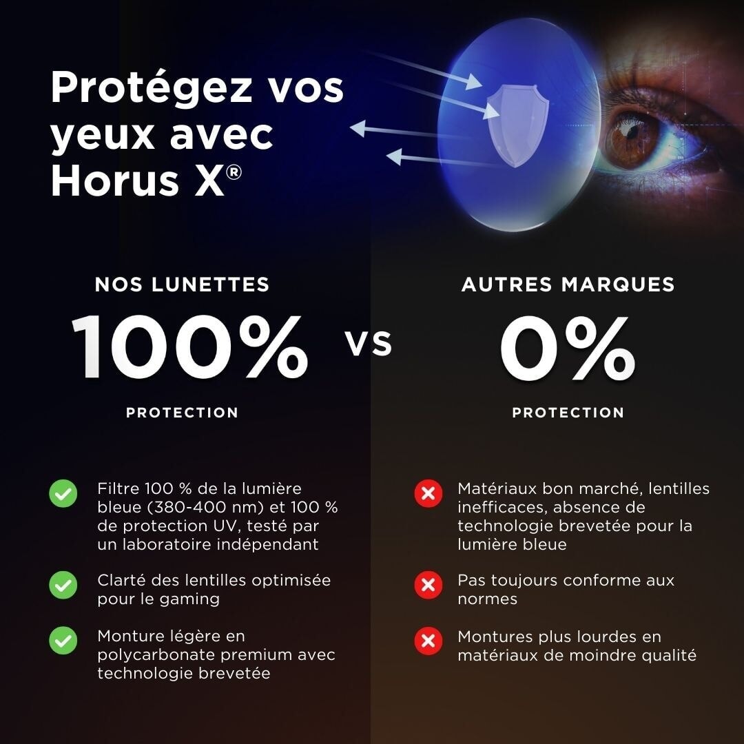 Darkmatter® lenses: Category 3 lenses designed for superior sun protection. Featuring Horus X's patented technology, they're also anti-glare and block 96% of blue light. Perfect for reading or scrolling on screens outdoors.