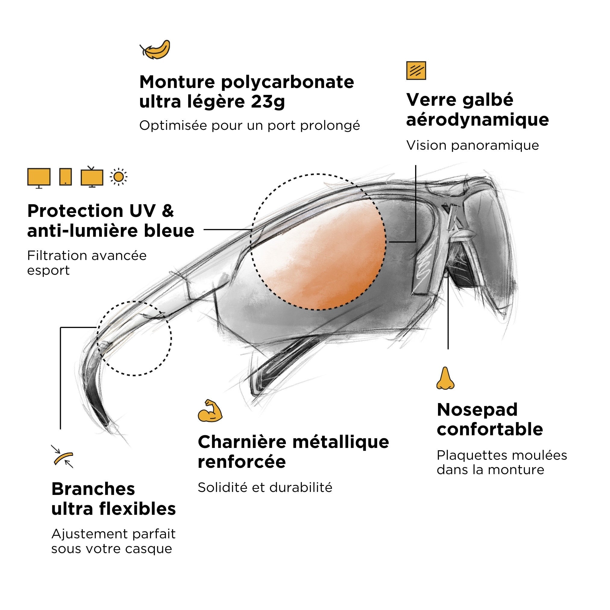 Glasses as resistant and durable as ever, using lightweight japanese polycarbonate (material used in ballistic protection) and reinforced metal hinges. Equipped with the famous Horus X lifetime warranty.