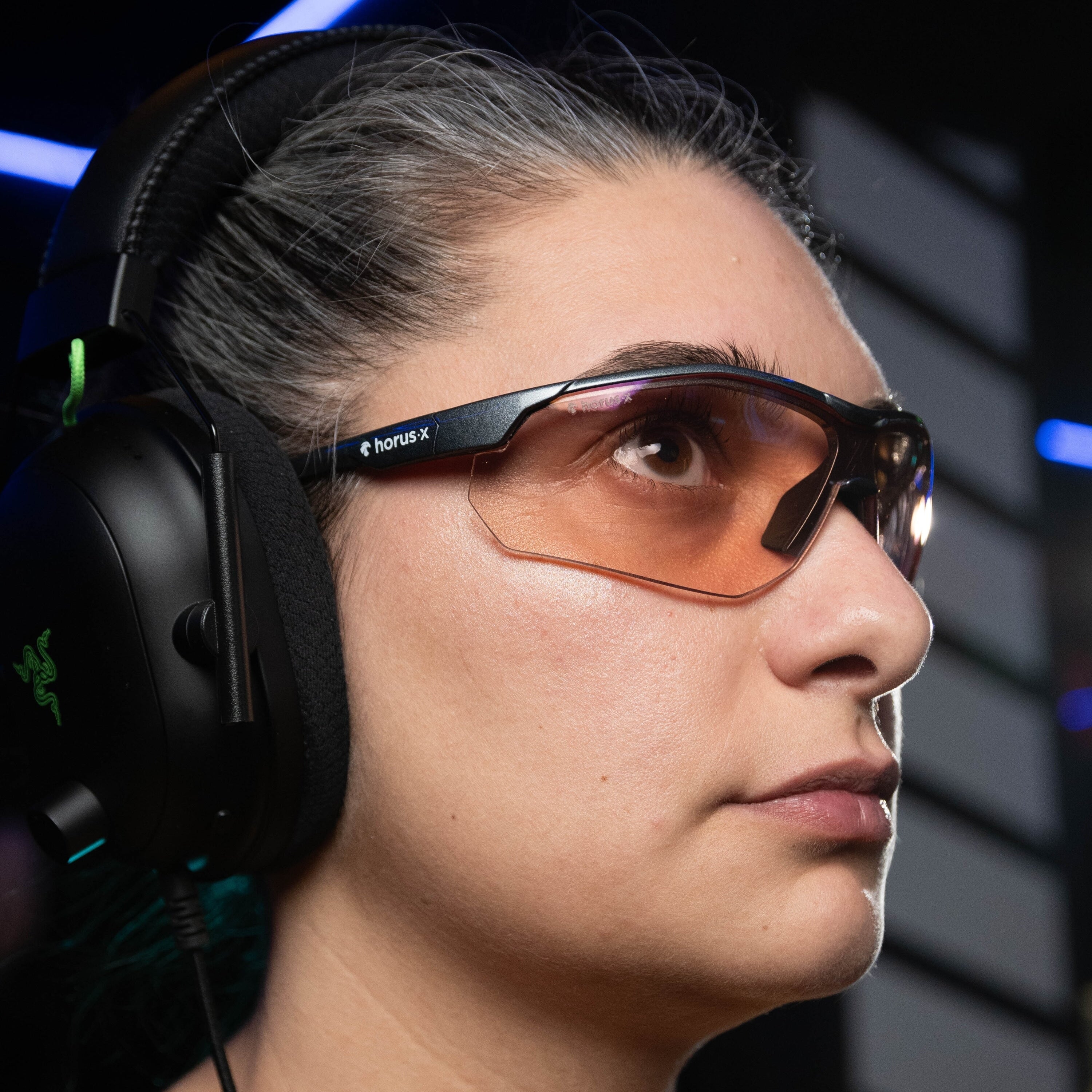 The ProXima Esports gamer glasses combine pro sporting glasses inspiration with patented Horus X technology for intense blue light filtration, while preserving true-to-life colors. Ergonomic, lightweight, and comfy, they’re built to boost your performance and keep you gaming longer without discomfort.